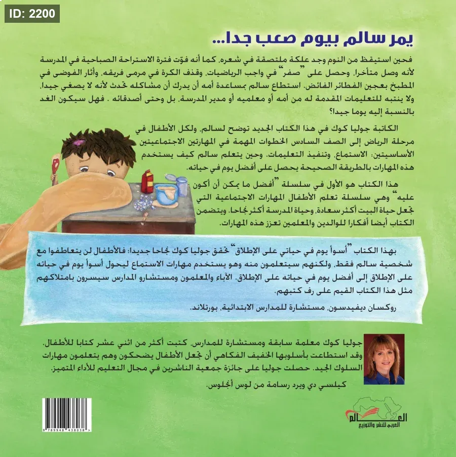 الكاتبة جوليا كوك معلمة سابقة ومستشارة للمدارس. كتبت أكثر من اثني عشر كتابًا للأطفال. وقد استطاعت بأسلوبها الخفيف الفكاهي أن تجعل الأطفال يضحكون وهم يتعلمون مهارات السلوك الجيد. حصلت جوليا على جائزة جمعية الناشرين في مجال التعليم للأداء المتميز.